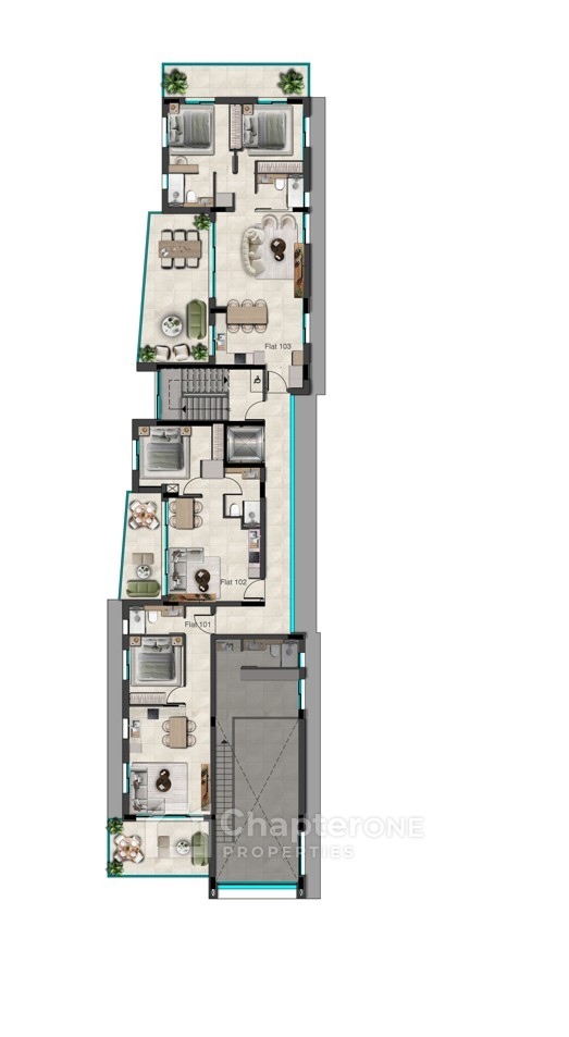 - Modern 4-storey building with 12 apartments